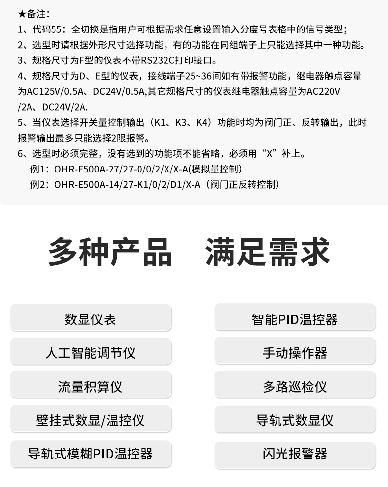 數顯儀表與溫控器 顯示控制儀 模糊PID溫控器 人工智能調節儀 手動操作器 流量積算儀 數字顯示容積儀 多路巡檢儀 導軌式數顯表 導軌式溫控器 導軌式數顯溫度變送器 導軌流量積算儀 導軌多路巡檢儀 壁掛式數顯表 壁掛式溫控器 閃光報警器 移相觸發器 固態繼電器