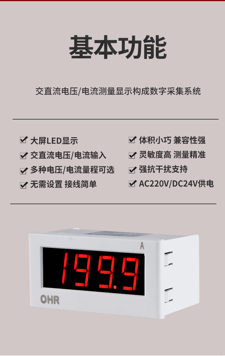 虹潤(rùn)公司是專(zhuān)業(yè)生產(chǎn)數(shù)字電壓表的國(guó)家專(zhuān)精特新“小巨人”企業(yè)。生產(chǎn)的電壓/電流表,具有大屏LED顯示,交直流電壓/電流輸入,免設(shè)置易接線,性?xún)r(jià)比高等特點(diǎn)。產(chǎn)品獲得一種交流信號(hào)變送器、交直流信號(hào)轉(zhuǎn)換電路、基于DCS技術(shù)的盤(pán)裝式三相電量表等3項(xiàng)國(guó)家發(fā)明專(zhuān)利,主持起草現(xiàn)場(chǎng)設(shè)備集成等5項(xiàng)智能制造國(guó)家標(biāo)準(zhǔn),物聯(lián)網(wǎng)電流變送器規(guī)范、物聯(lián)網(wǎng)總體技術(shù)智能傳感器特性與分類(lèi)等2項(xiàng)國(guó)家標(biāo)準(zhǔn),以及直流漏電流傳感器規(guī)范、通信系統(tǒng)多通道數(shù)據(jù)采集控制終端規(guī)范等2項(xiàng)軍用標(biāo)準(zhǔn),參與國(guó)際5G標(biāo)準(zhǔn)制定。產(chǎn)品廣泛應(yīng)用于電力系統(tǒng)、工業(yè)制造、自動(dòng)化設(shè)備、計(jì)量檢測(cè)等各種工業(yè)領(lǐng)域。