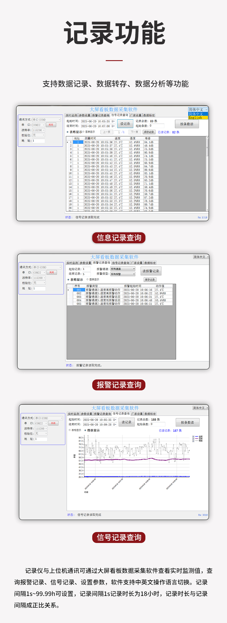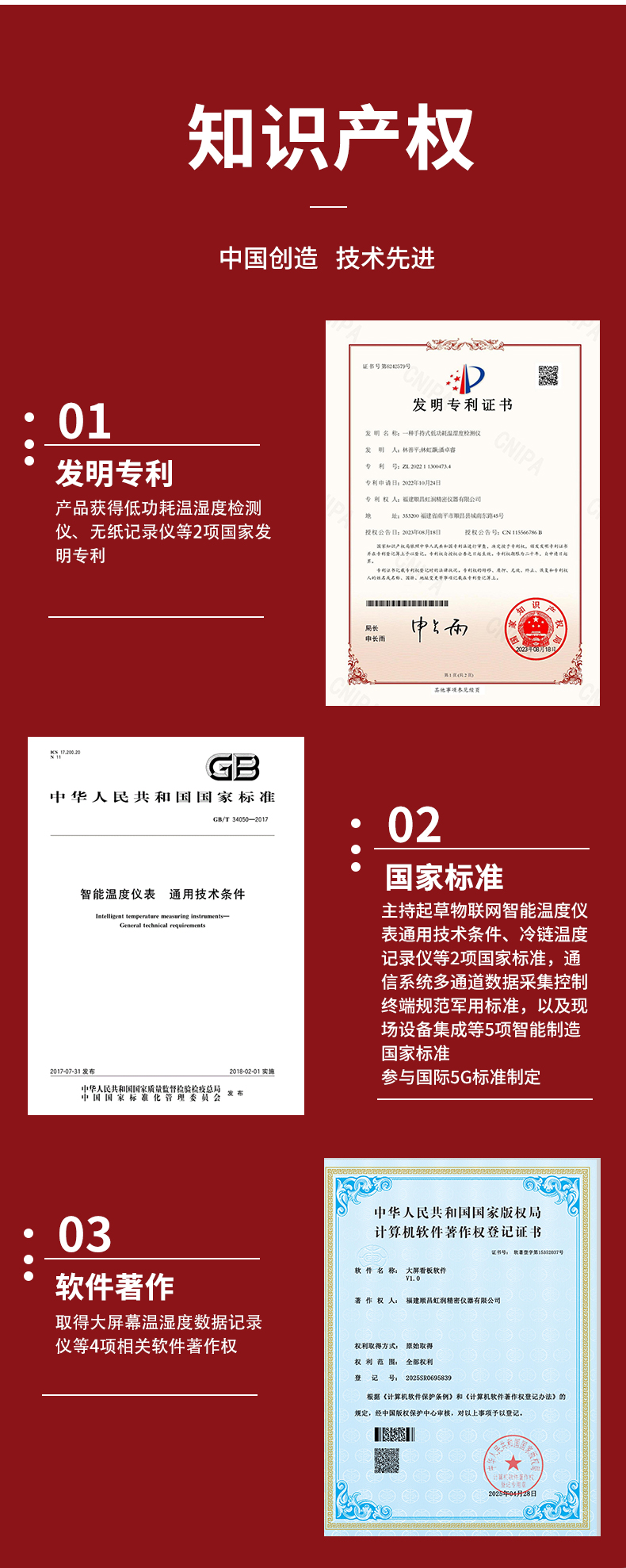 虹潤公司是專業(yè)生產(chǎn)環(huán)境監(jiān)測儀表的國家專精特新“小巨人”企業(yè)。生產(chǎn)的大屏噪音溫濕度記錄儀,具有高清大屏顯示,數(shù)據(jù)記錄與轉(zhuǎn)存,同步觸發(fā)可靠預警,RS485或以太網(wǎng)通訊等特點。產(chǎn)品獲得一種手持式低功耗溫濕度檢測儀、無紙記錄儀等2項國家發(fā)明專利,主持起草物聯(lián)網(wǎng)智能溫度儀表通用技術條件、冷鏈溫度記錄儀等2項國家標準,通信系統(tǒng)多通道數(shù)據(jù)采集控制終端規(guī)范軍用標準,以及現(xiàn)場設備集成等5項智能制造國家標準,參與國際5G標準制定,取得大屏幕溫濕度數(shù)據(jù)記錄儀等3項相關軟件著作權(quán)。產(chǎn)品廣泛應用于電子制造、醫(yī)療科研、倉儲管理、畜牧養(yǎng)殖、建筑工程等諸多領域。